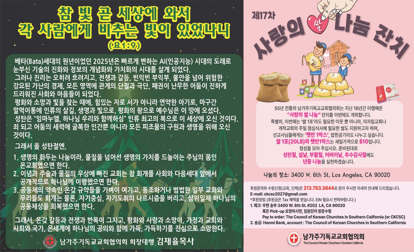 남가주 한인 기독교 공동체와 지역 사회를 위해 다양한 활동을 펼치고 있습니다.